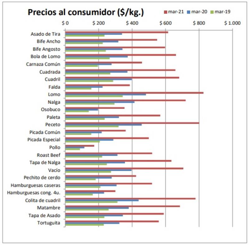 Según datos oficiales marzo fue un mes con muy precios calientes, al punto que el índice de precios al consumidor (IPC), que difundió la semana pasada el Indec, arrojó un alza de 4,8% en el mes. Sin embargo, el dato fue ampliamente superado por la evolución de los precios de la carne vacuna.