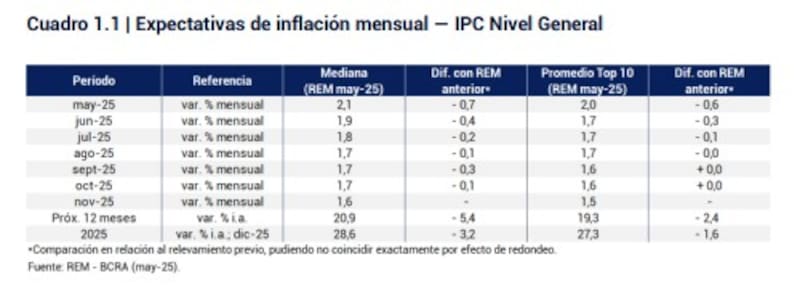 En lo que se refiere al total del 2025 fijaron una variación interanual del 28,6%. Esto significa un recorte de 3,2 puntos porcentuales en relación con la encuesta previa.
