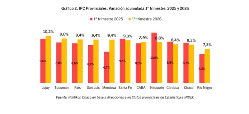 En el podio se ubicaron Jujuy, con un alza del 10,2%, y Tucumán, con el 9,6%, consolidándose como los distritos de mayor presión inflacionaria en lo que va del año.