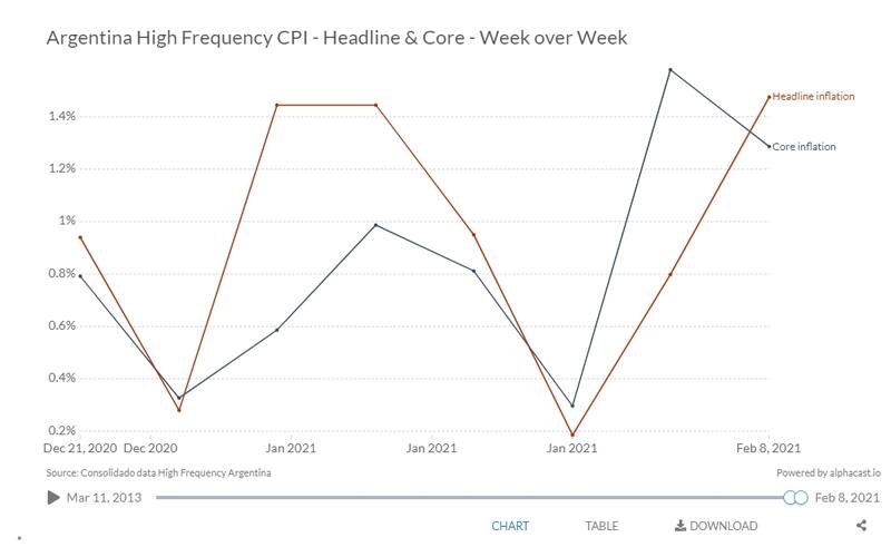 El objetivo del Gobierno es terminar el año con una inflación inferior al 31%. Si la inflación de febrero cierra como esperan los analistas en torno al 3,5%, en los diez meses restantes del año, para que la meta se cumpla, el promedio mensual no debe superar el 2%.