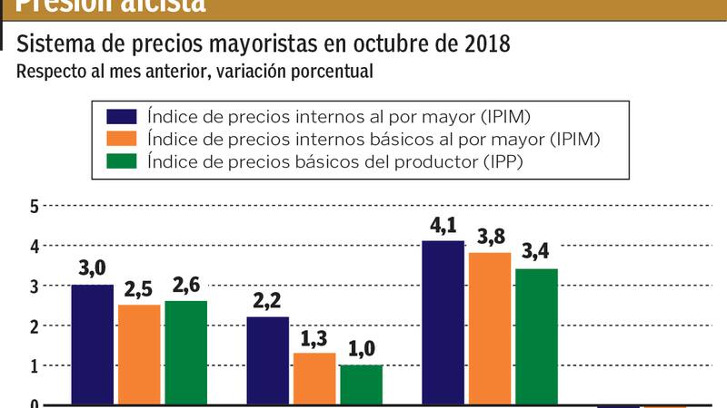 El nivel general del índice de precios internos al por mayor (IPIM) tuvo en octubre un incremento del 3% en comparación al mes anterior. El dato contrasta con el fuerte aumento que se había registrado en septiembre, cuando el indicador había trepado a 16%.