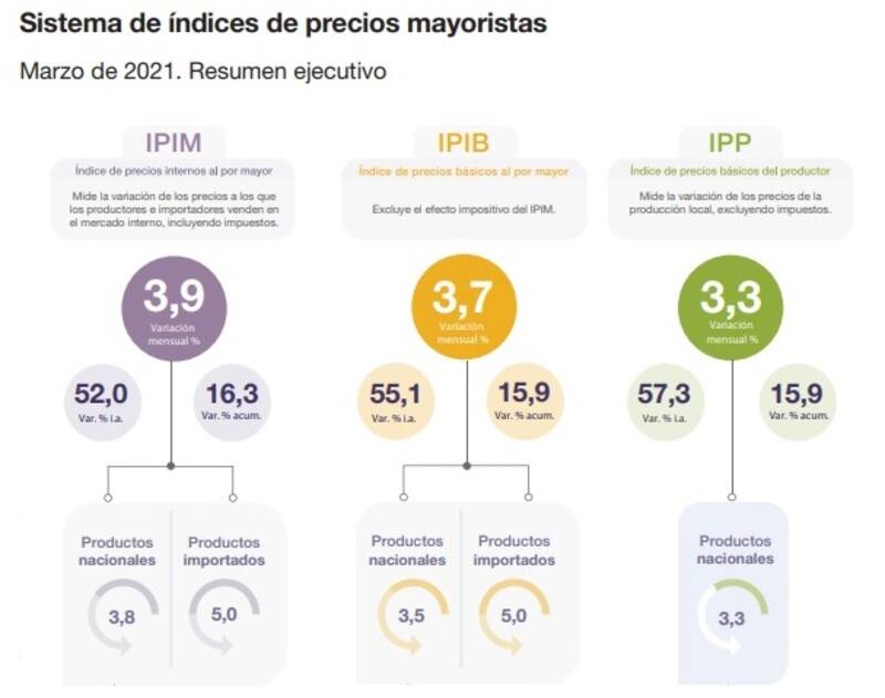 Pese a la moderación de la suba, en la comparación interanual se registró un salto del 52% en los precios mayoristas, y un 16,3% en el acumulado del primer trimestre del año.