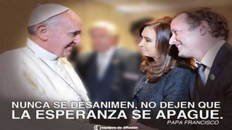 “No lo he visto (el afiche), cuando vaya a la ciudad de Buenos Aires lo veré.No forma parte de la campaña del Frente para la Victoria, bajo ningún concepto”, dijo a Radio La Red al ser consultado sobre el afiche en el que aparece una frase pronunciada por el papa en la Jornada de la Juventud que dice “Nunca se desanimen, no dejen que la esperanza se apague” y lleva la firma ‘Equipos de Difusión’.