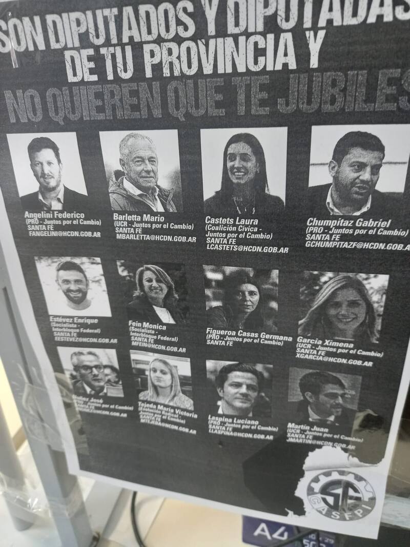 ¿A qué escraches se refiere el santafesino? Días atrás, el sindicato de los trabajadores y trabajadoras de la Administración Nacional de la Seguridad Social (Anses) empapeló las sucursales de ese organismo con las caras de los diputados y la leyenda "son diputados y diputadas de tu provincia y no quieren que te jubiles".