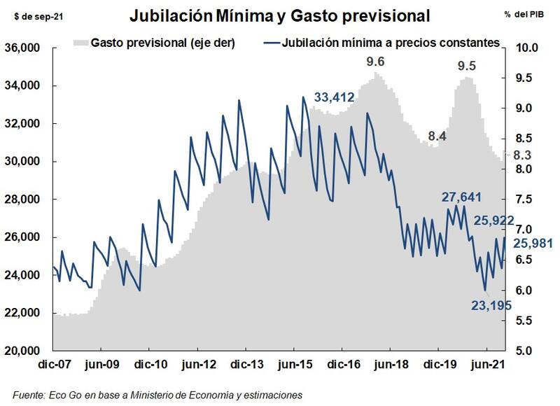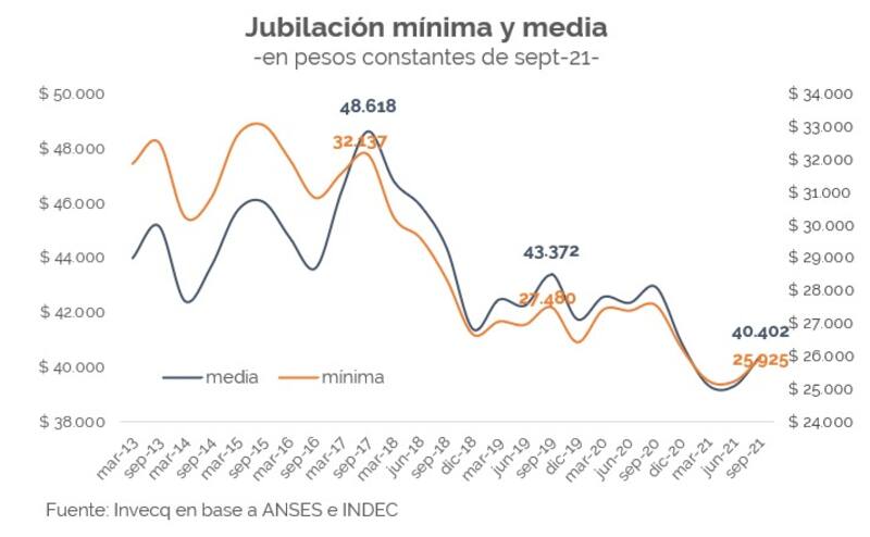 "Comparando el 2021 con el 2020 las jubilaciones van a cerrar con caídas reales que se suman a las que ya viene mostrando desde 2018. Esto se ve tanto para la mínima como para el resto (aunque las mínimas caen menos por los aumentos diferenciales que se les dio el año pasado). Se vuelve a generar un achatamiento de la pirámide previsional", apuntó Matías Surt, economista jefe de Invecq.
