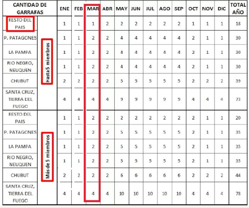 La Resolución 49/2015, en su punto 11.3, emitida por la Secretaría de Energía, determina la cantidad de garrafas que se abonan por medio del programa Mi Hogar, en función de tres parámetros: