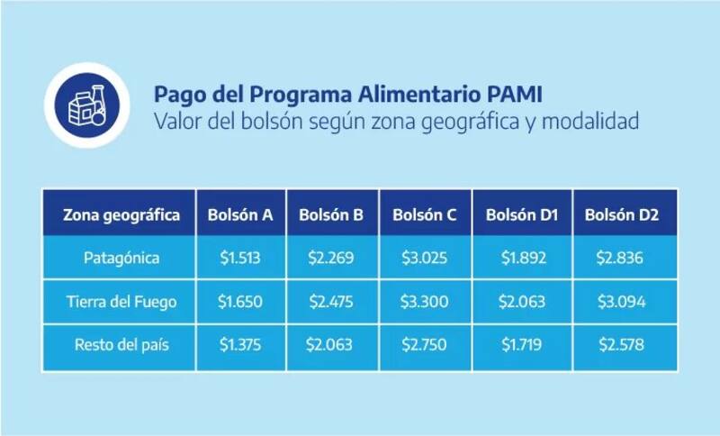 Las y los jubilados y pensionados ANSES inscriptos en el Programa Alimentario PAMI, cobrarán desde una suma base de $ 1375 hasta $ 3094, según la zona geográfica y modalidad de liquidación.