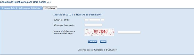 Completar los campos con CUIL, DNI y código numérico asignado por la web oficial.
