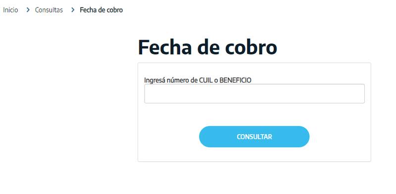 Al hacer click se abrirá una nueva ventana donde se deberá ingresar el número de CUIL del titular y apretar en consultar. La página devolverá con los resultados de fecha de pago y banco correspondiente.