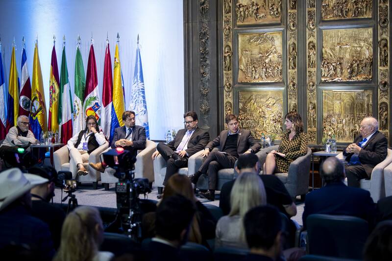 Contrario a su costumbre, Kicillof fue muy breve y respetó los siete minutos asignados a cada orador de un panel que contó con expositores como el ex presidente del Banco Interamericano de Desarrollo (BID), Enrique Iglesias; el docente de la Universidad Nacional de Rafaela, Pablo Costamagna; las presidentas del Congreso Nacional de Ediles de Uruguay, Patricia Pelúa, y de la Confederación Uruguaya de Entidades Cooperativas, Alicia Maneiro; la directora de la División de Relaciones Internacionales y Cooperación de la Intendencia de Montevideo, Fabiana Goyeneche; y el representante de la Organización Internacional del Trabajo (OIT), Pierre Martinot-Lagarde. .