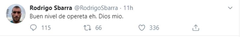Tras enterarse de esta situación, Sbarra eligió las redes sociales para hacer su descargo y calificó este hecho como una "opereta".