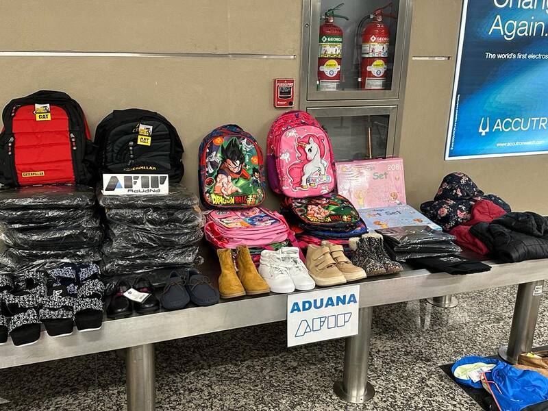 En concreto, los agentes especializados de la Aduanas y la AFIP encontraron 28 mochilas luciendo la marca Caterpillar e imágenes de personajes infantiles; 28 pares de calzado; pantalones cortos; camperas; sets de arte para niños y fajas deportivas.