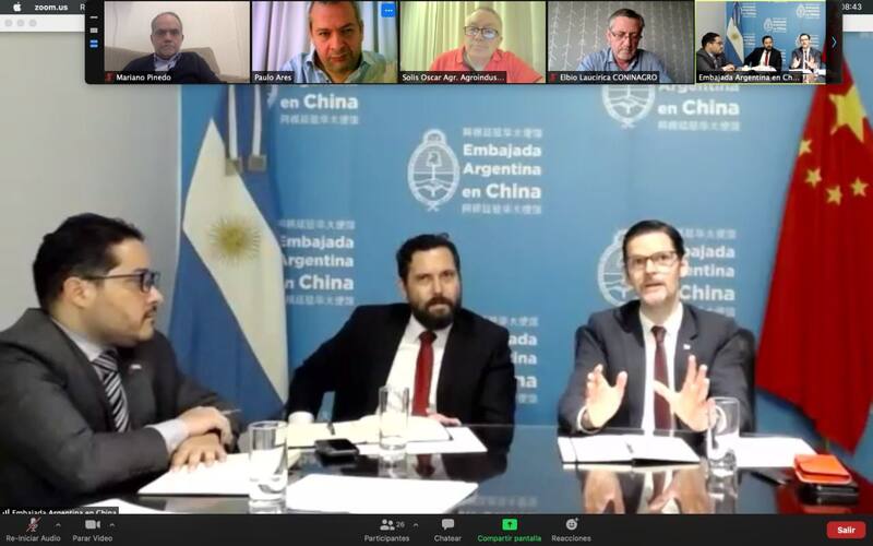 Vaca Narvaja habló de este tema con las autoridades de Coninagro y presentó a los equipos de trabajo, acompañado por el agregado agrícola en Beijing, Hernán Viola y el nuevo consejero agrícola en Shanghai. Oscar Solis. También en la videoconferencia con Coninagro participó el Jefe de Gabinete de la Embajada, Leandro Compagnucci.