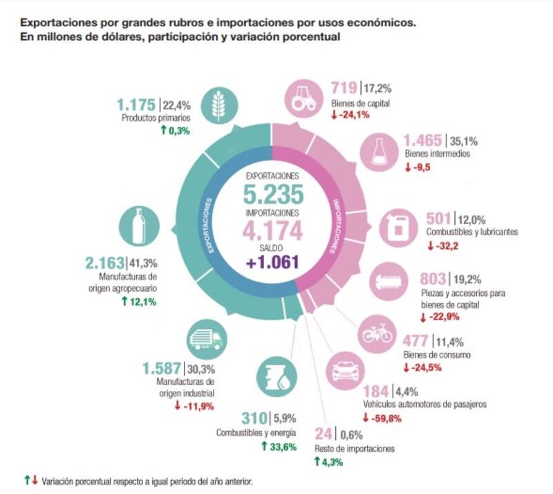El acumulado del primer semestre en exportaciones asciende a u$s 30.752 millones, mientras que el rubro importaciones para los primeros seis meses de 2019 trepó a u$s 25.163 millones.
