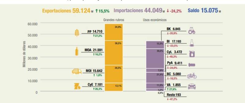 Las exportaciones aumentaron 625 millones de dólares y las importaciones descendieron 67 millones de dólares.