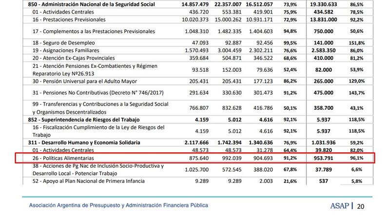 Hasta el primero de julio, el presupuesto para las Políticas Alimentarias ya se había consumido en un 91,2%. Es decir, se habían ejecutado $ 904.693 millones de un total de $ 992.039 millones. A modo de graficar el gasto, si se divide ese número por los seis meses que van del año, se gastaron en total unos $ 150.782 millones por mes.