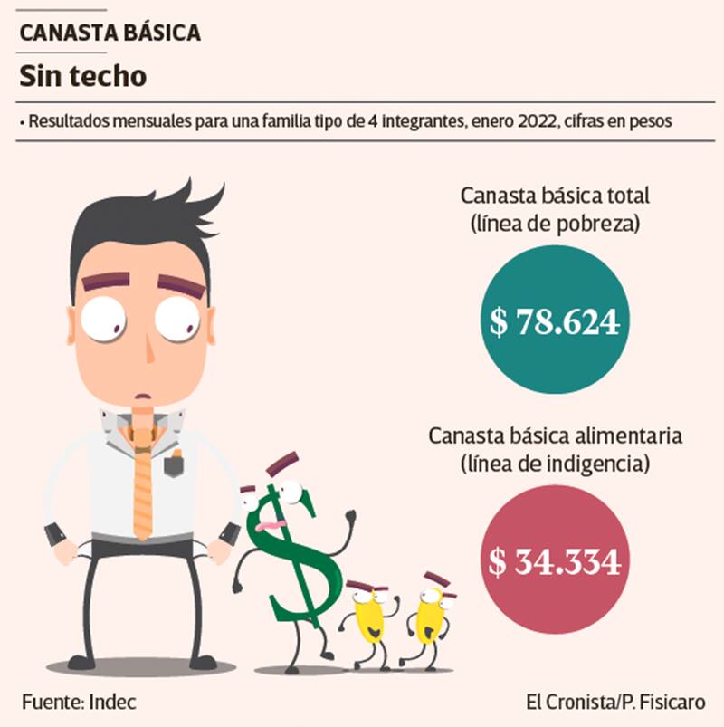 Un dato a destacar es que ambas canastas -CBA y CBT- registraron en el primer mes del año una cierta aceleración respecto de los guarismos de diciembre, que en el caso de la canasta alimentaria había sido de 3,9% a final de 2021 y en 3% en la canasta total.
