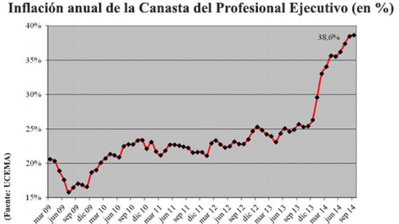 El mes pasado, esa canasta registró un incremento del 2,06% con respecto a agosto, que aunque es menor que el de los últimos meses fue ligeramente superior al de hace un año y aceleró ligeramente el ritmo de inflación interanual (en agosto era del 38,5%).