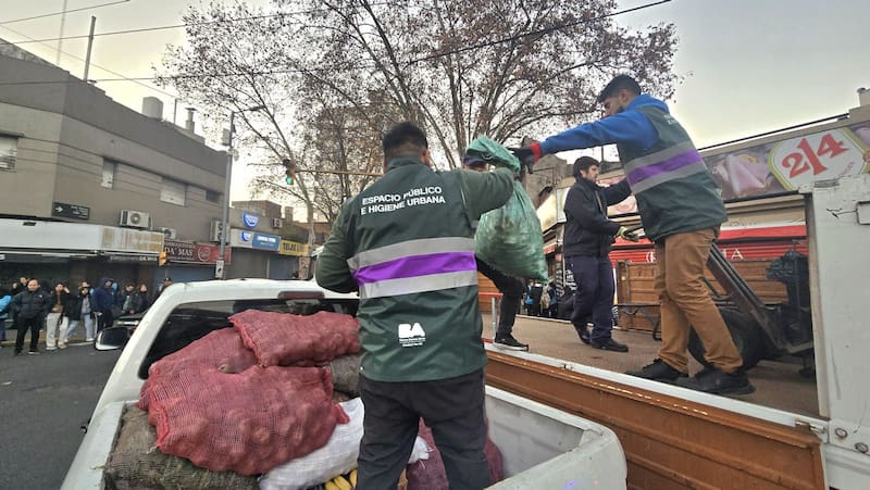 Además de los manteros instalados durante todo el día de lunes a sábados, en Liniers también había venta ilegal de comida en la calle y comerciantes que hacían un mal uso de las veredas porque también las ocupaban. Hubo 350 bultos de mercadería secuestrada.