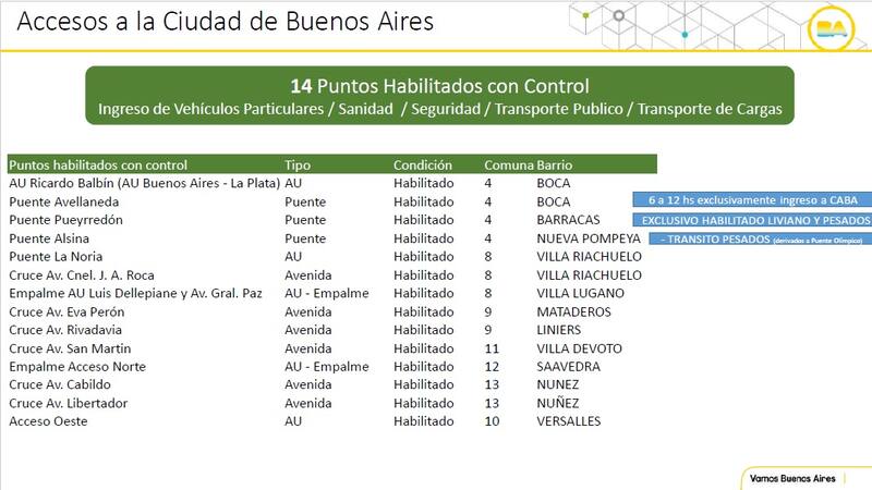 Desde el inicio de las restricciones por la pandemia, las autoridades porteñas clasifican a los accesos en tres grupos: habilitados, semihabilitados y cerrados. Los primeros son para todas las personas que tienen permiso de circular. En los semihabilitados solo se permite el transporte público, de sanidad, seguridad y cargas. Y los cerrados solo pueden abrirse por emergencias.