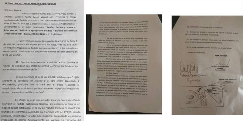 Por su parte, Eduardo López, abogado del partido, sostuvo que “el plazo (para que Servini decida si concede la apelación) es de tres días .