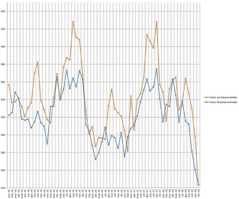 La mala performance fue la constante para el sector a partir de agosto, ya que tanto en la comparación interanual como en la mensual los resultados siempre fueron negativos. Sin embargo, el desplome de la actividad en diciembre, que fue de 31% interanual y 6,58% en comparación con noviembre, acentuó la caída que registraba la construcción hasta el mes de noviembre, mes en el que ya había acumulado un rojo de 4,7%, que terminó elevándose hasta 7% al cerrar 2018 si se lo compara con el nivel de actividad de 2017.