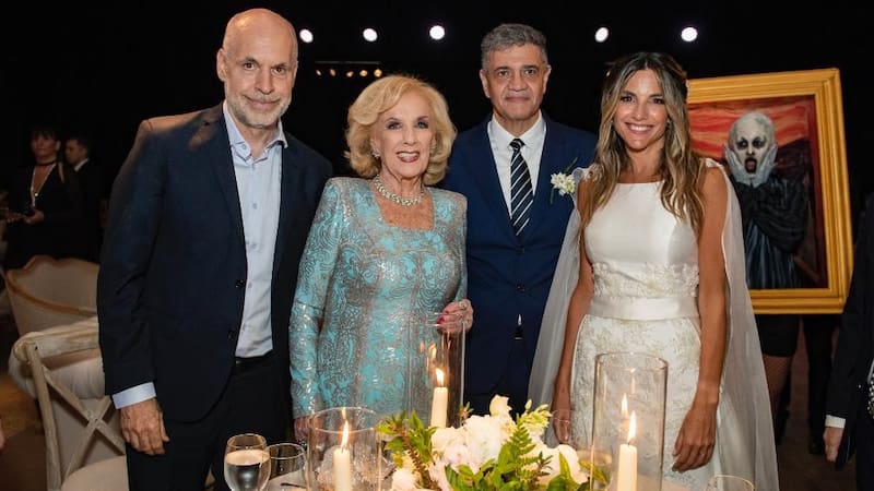 Así las cosas, era razonable que el Jefe de Gobierno de la Ciudad evitara pasar demasiado tiempo en la fiesta de casamiento, a donde llegó a las 20 para irse antes de las 20.30, según aseguraron testigos a El Cronista. Incluso no quedaron muchas fotos de su paso junto a los protagonistas de la ceremonia, apenas la que acompaña esta nota, con Mirtha Legrand de testigo.