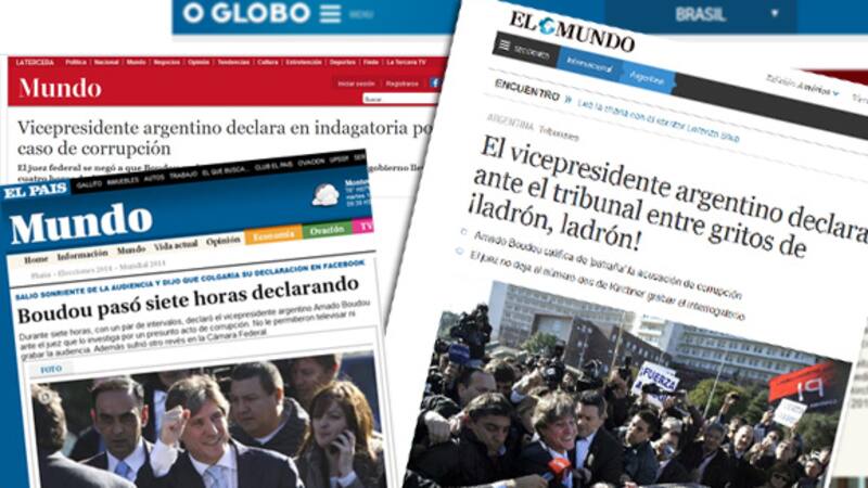 La declaración indagatoria de Amado Boudou ante el juez federal Ariel Lijo llegó a la prensa internacional, que en su mayoría destacó el hecho inédito de un vicepresidente en ejercicio tenga que responder ante la Justicia acusaciones de corrupción.