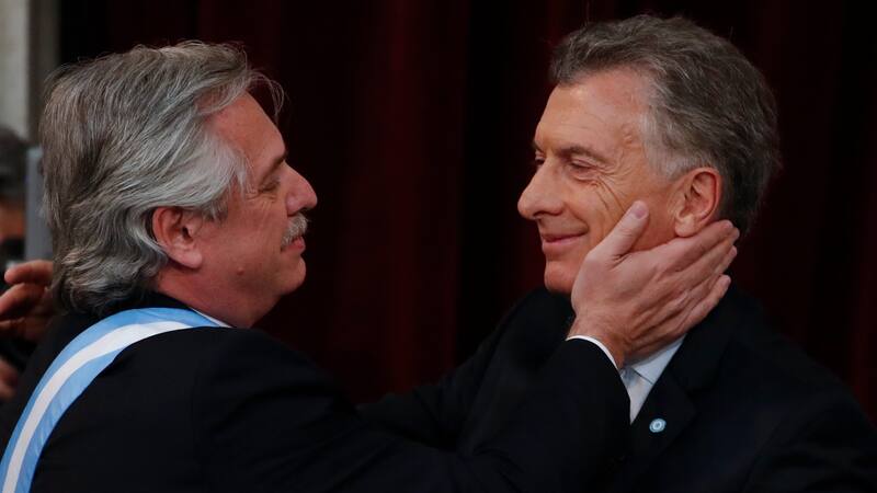 Macri estaba preparado para las críticas. Pero quedó sorprendido cuando salió a escena, mientras cantaban la marcha peronista. Saludó a Alberto Fernández y recibió solo una dura mano de Cristina Fernández, quien ni lo miró. Macri quedó cerca de un minuto en medio de ellos, con una sonrisa tensa, mientras diputados y ministros del nuevo gobierno le dedicaron con fuerza la marcha peronista.