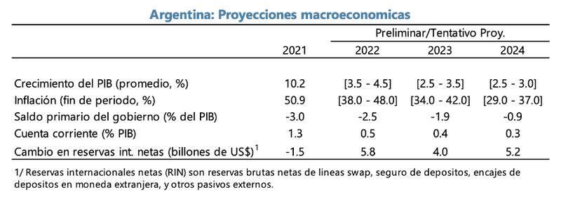 El memorando de políticas económicas y financieras pactado entre el staff técnico del Gobierno y el Fondo Monetario Internacional indica en sus proyecciones que el crecimiento del PBI en este año rondaría entre el 3,5% y el 4,5% y luego menguaría levemente en los años siguientes. Estimaciones lejanas a las publicadas por Fitch Ratings.