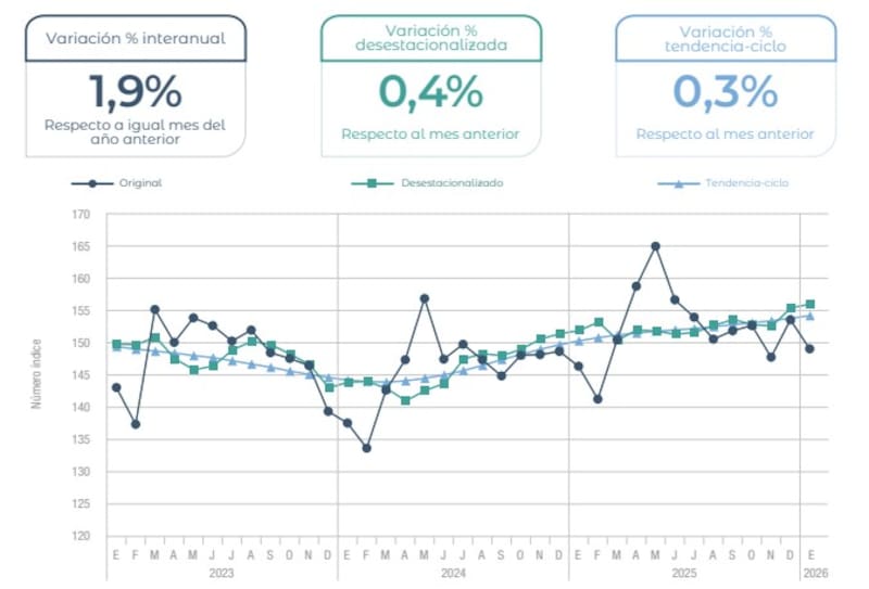 Asimismo, se observó un avance del 1,9% en comparación a enero de 2025, lo que también representa el segundo mes consecutivo de suba interanual.