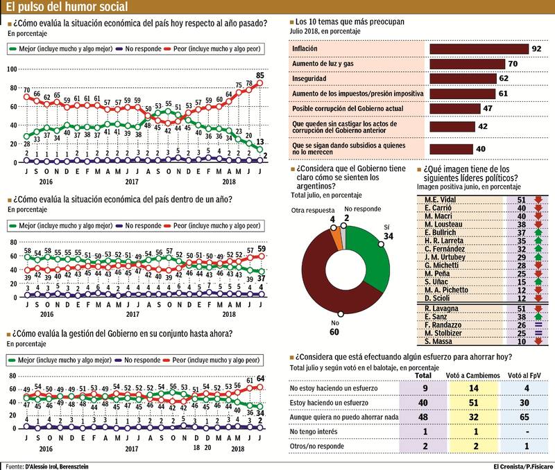 "Entre referentes ajenos a la actual gestión continúa destacándose la imagen de Roberto Lavagna", agregó DAlessio. En cambio, entre el resto de los opositores, el mayor guarismo lo ostenta Cristina Kirchner, pero resta saber si sufrirá un impacto por la causa de sobornos. Y es que, antes de conocerse el caso, 76% de los encuestados pedía seguir adelante con la ley que autoriza a recuperar bienes y dinero incautado por casos de corrupción, aunque origine problemas con partidarios de quienes cometieron ilícitos.
