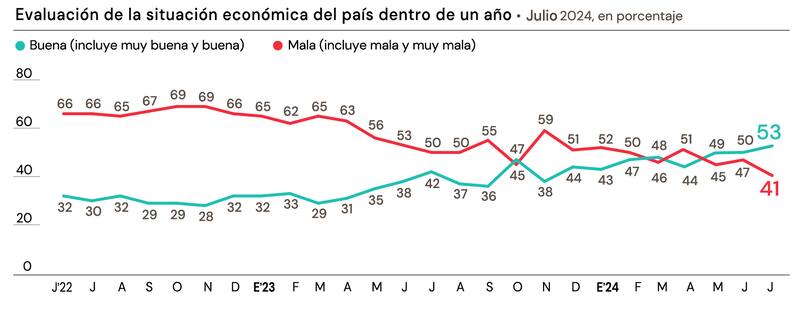El estudio, que refleja la opinión online emitida durante los últimos días de julio por 1005 adultos en todo el país, muestra que un 42% de los consultados observa que la situación económica es mejor que la de hace un año. Si bien el dato contrasta con el mayoritario 55% que piensa lo contrario, exhibe un avance de 8 puntos respecto de los registros previos hasta alcanzar un nivel sólo igualado por el de marzo de 2020, mes en que se dictó la cuarentena por la pandemia.