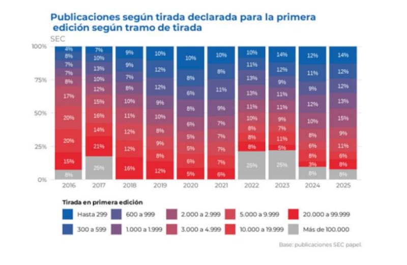 El resultado es un mercado más fragmentado y con menor capacidad de distribución. Según el informe, más de una cuarta parte de los libros se lanza con tiradas inferiores a 600 ejemplares, un nivel insuficiente para cubrir la red de librerías del país.