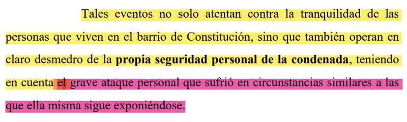 "Todo lo expuesto indica la imperiosa necesidad de que, cuanto menos, se revea el lugar donde Fernández cumple la prisión domiciliaria, a los efectos de preservar la tranquilidad y la seguridad de la persona condenada, de los vecinos y de las inmediaciones", señalaron y afirmaron que no se pueden desentender "del impacto social negativo que la modalidad de ejecución de la pena dispuesta ha producido".