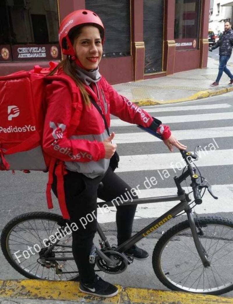 En diálogo telefónico con Reverso, dio detalles del contexto en el que fue tomada la fotografía: “Yo no trabajo con mi hija. Me acerqué a la avenida Belgrano a activar mi usuario de la aplicación [de Pedidos Ya]. Yo me activo, llevo mi hija al jardín y luego de ahí salgo a trabajar. En ese momento, un señor me toma la foto. Me agarró desprevenida, no sabía que me la estaba tomando a mí. Yo llevo mi bici en la mano y llevo a mi hija conmigo, pero no me monto en ningún momento en la bici .