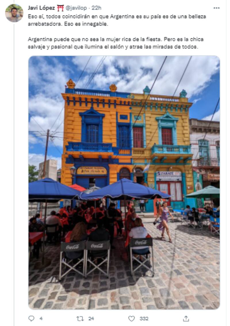 La publicación de Twitter del turista español que se volvió viral abordó también el retroceso en el mercado mundial de la Argentina, que permitió tiempo atrás posicionarse como la sexta potencia mundial y "competir" con el Producto Bruto Interno (PBI) de Francia o Alemania.