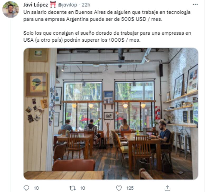 En este sentido, referenció "un salario decente en Buenos Aires" en "alguien que trabaje en tecnología para una empresa" cuya suma "puede ser de 500$ USD / mes".