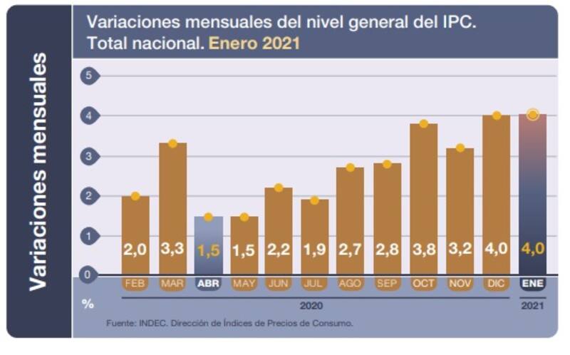 Sin dudas, el dato de enero es un indicador elevado después del 4% registrado en diciembre pasado, y un año que terminó en 36,1% de incremento, pero en el que se observó una pérdida del poder adquisitivo de los salarios por tercer año consecutivo.