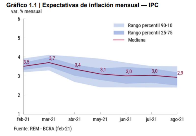 En el primer bimestre de 2021 los precios minoristas avanzarán un 7,5%. Para marzo no hay señales de desaceleración. El Relevamiento de Expectativas de Mercado (REM) que realiza el Banco Central espera una suba del 3,7% por el aumento en transportes, servicios de comunicación, educación y naftas.