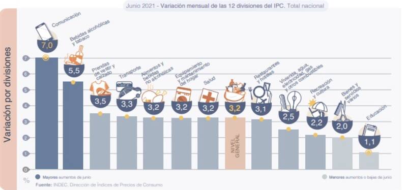 El Índice de Precios al Consumidor (IPC) correspondiente a junio se ubicó en 3,2% el nivel más bajo desde octubre de 2020. En el acumulado del primer semestre la inflación ya suma 25,3% y trepa a 50,2% en los últimos doce meses.