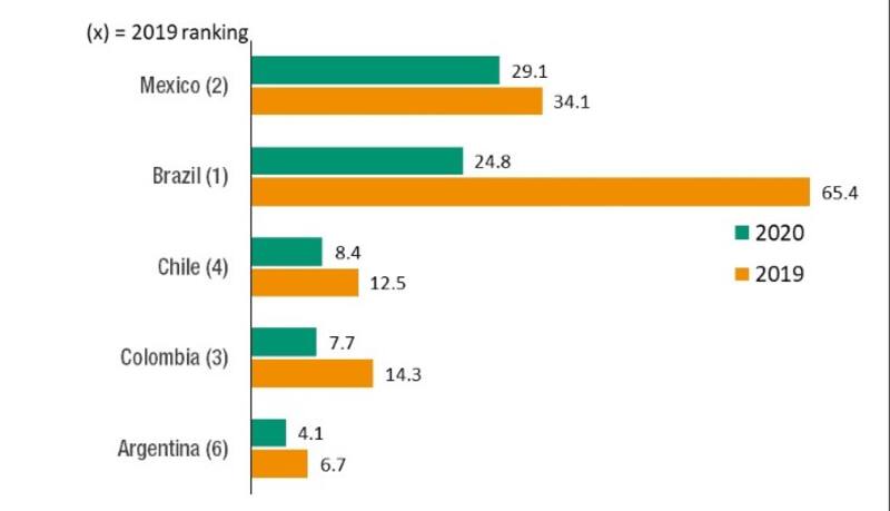 La llegada de inversión extranjera directa a la Argentina tuvo una baja del 38,1% y representó u$s 4.100 millones en 2020, un descenso menor al resultado de América latina, que llegó a una caída del 45.4% en el último año según los datos de la Unctad, la Conferencia de Naciones Unidas para la Cooperación y el Desarrollo. La caída global fue del 35%.