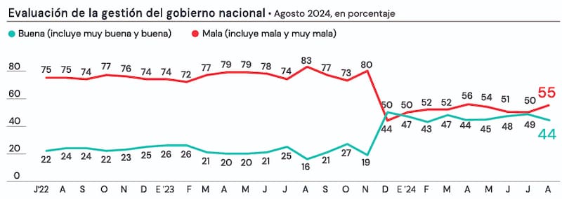 En ese escenario, la evaluación negativa de la gestión de gobierno subió 5 puntos y la imagen positiva del Presidente bajó cuatro, como parte de un descenso generalizado en los principales dirigentes del oficialismo.
