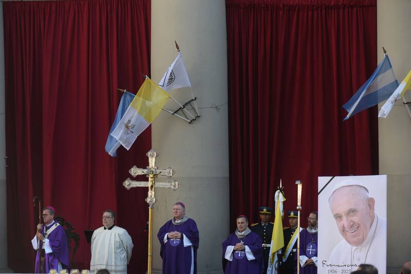 Sobre el final de la misa, y tras pedir por el descanso eterno del papa Francisco, García Cuerva,visiblemente emocionado, pidió hacer silencio para escuchar un mensaje grabado por el propio Bergoglio.