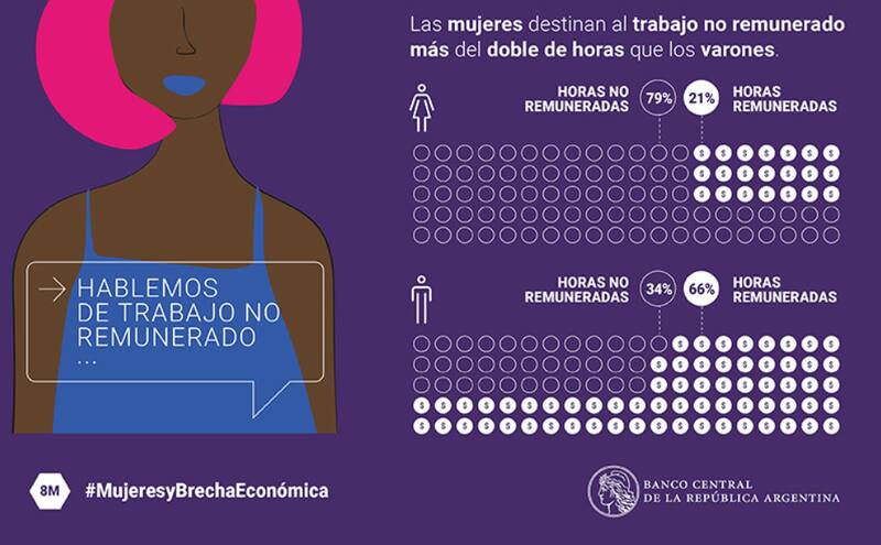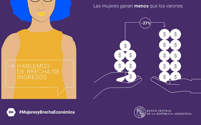 Desde el 2 al 8 de marzo la entidad realiza la campaña #MujeresyBrechaEconómica a través de sus redes sociales, con el objetivo de divulgar información sobre distintas brechas económicas. “La visibilización cumple, además, con la tarea de compilar y publicar regularmente estadísticas monetarias, financieras, cambiarias y crediticias que nos asigna nuestra Carta Orgánica , destaca a través de su página oficial.