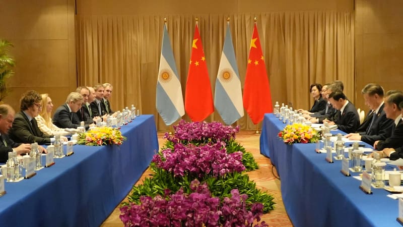 Las delegaciones de ambos países se reunieron ayer por la mañana en el Hotel Sheraton. Según pudo reconstruir este medio, en la bilateral solo hablaron Milei y Xi, quienes estuvieron acompañados por 13 altos funcionarios de cada lado, predominantemente económicos.