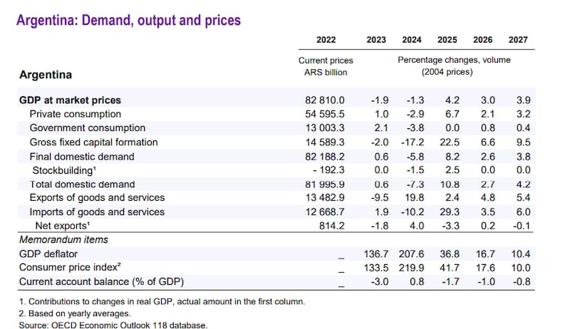 En su informe OECD Economic Outlook, el organismo al que busca entrar la Argentina como socio pleno, marca la moderación de la inflación, el cierre de déficits y dinamismo sectorial en energía y minería. Ese proceso convive con un crecimiento que se enfrió y con episodios de tensión cambiaria que reintroducen riesgos latentes, afectando la velocidad de la recuperación.