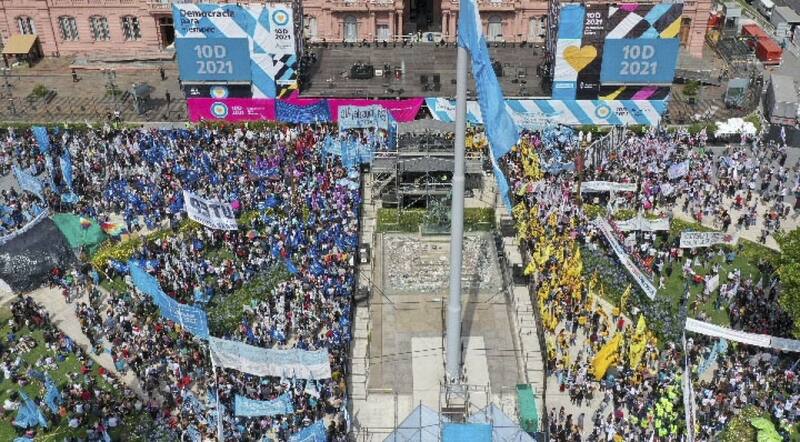 Fue claramente la plaza de la fractura: la conmemoración por el Día de los Derechos Humanos y el retorno de la democracia en la Plaza de Mayo expuso como nunca antes a una Cristina Kirchner que le fijó al Presidente condicionamientos concretos en la negociación que lleva adelante con el FMI, mostró un Alberto Fernández que trató atenuar el impacto de las críticas de la vicepresidenta y a un Frente de Todos combativo que expuso en su conjunto la profundización de la grieta con la oposición.