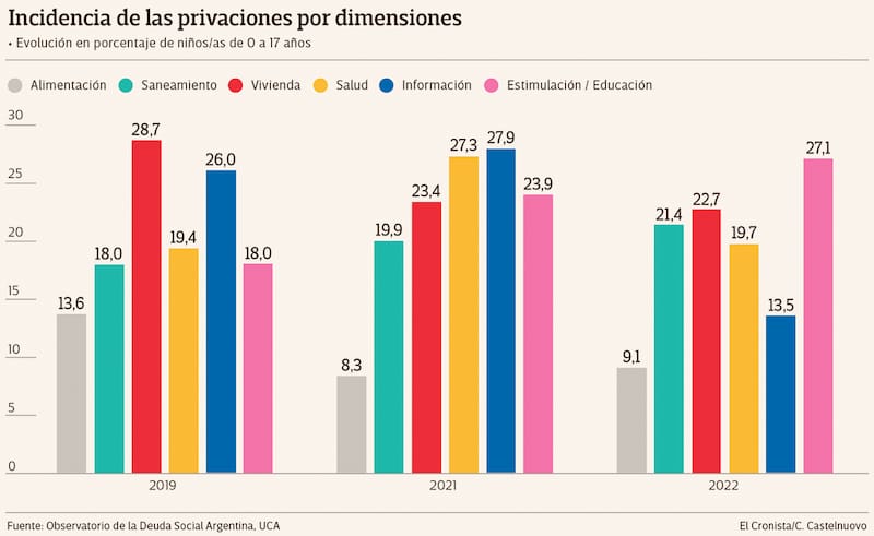 Los datos surgen del último informe del Observatorio de la Deuda Social de la Argentina de la Universidad Católica (UCA) al que accedió El Cronista y lleva como título "Retorno a la senda de privaciones que signan a la infancia".