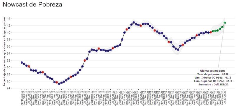Con esa información, la Universidad Torcuato Di Tella actualizó el nowcast de pobreza, en el que cruza las canastas con la proyección de la encuesta de ingresos del Indec. Martín González-Rozada, director de la maestría en Econometría de la UTDT, estimó un índice de pobreza del 42,8% para el semestre julio - diciembre.